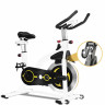 Спин-байк CHAOKE чёрного цвета удобнее и тише других. Прочная стальная рама и алюминиевый маховик весом 19 килограмм обеспечивают устойчивость во время езды на велосипеде. Он выдерживает нагрузку до 150 кг и подходит для пользователей ростом от 146 до 198 см. Система магнитного сопротивления позволяет легко и удобно изменять интенсивность тренировки, что делает ее идеальным выбором как для начинающих, так и для профессионалов. Гибридная система с магнитом обеспечивает плавную, почти бесшумную езду на велосипеде, обеспечивая полную безопасность благодаря нажимному аварийному тормозу. Благодаря 5 уровням регулировки высоты сиденья и 6 уровням высоты руля этот велотренажер отвечает потребностям людей разного роста. Большое, мягкое и дышащее сиденье обеспечивает комфорт при длительной езде на велосипеде. Держатель для планшета позволяет вам слушать музыку или смотреть видео во время тренировки, что делает ваши тренировки более приятными. Нескользящие педали в форме стальной клетки подходят для всех размеров стопы и обеспечивают полную защиту, предотвращая скольжение и движение вперед. Они также оснащены регулируемыми ремешками для надежной фиксации. Транспортировочные колеса велосипеда облегчают его перемещение.