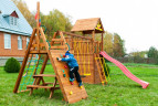 Детская площадка Выше Всех Новая Победа 22 разработана как для индивидуального использования на большом участке, так и для общественных мест на территории СНТ или коттеджных поселков. Модель отличается широким набором элементов, которые будут интересны как малышам, там и детям постарше. Изюминка модели Новая Победа 22 является мостик, соединяющий два моделя: качельный и модуль со скалодромом и сеткой-лазалкой. На этом мостике можно поиграть в крестики-нолики, можно использовать по прямом назначению, а можно разыгрывать целые ролевые сюжеты с поисками кладов, спасением принцессы из башни или захватом пиратского корабля! Какая бы фантазия не посетила вашего ребенка, он сможет ее реализовать на площадке Новая Победа 22.