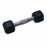 Гантель обрезиненная с хромированной ручкой. Вес гантели 6 кг, в комплекте 2 штуки (пара). Ручка с насечками для предотвращения скольжения. Гексагональная гантель – обрезиненная модель удобной конструкции. Гантель имеет много граней и не катается по полу. Обрезиненная поверхность не царапает пол при ударе. Гантели используются в фитнесе, лечебной физкультуре, бодибилдинге и других спортивных тренировках. Внутренний материал сталь Внешний материал резина Материал хвата сталь Длина хвата 12,5 см  Диаметр хвата 2,8 см  Вес гантели (1 шт) 6 кг  Размер упаковки (2 шт / комплект)   Объем упаковки          Вес брутто   Бренд  DFC  Страна производства  Китай  Гарантия  12 месяцев