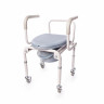 Кресло-стул с санитарным оснащением пассивного типа. Благодаря специальной конструкции рамы данное кресло-стул можно использовать в стандартных туалетных комнатах. Эта модель оснащена четырьмя телескопическими ножками с резиновыми наконечниками.