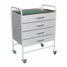 Стол манипуляционный с 3 полками и 2 ящиками, сделанный целиком из белого пластика*, с корзиной и ёмкостями для расходников